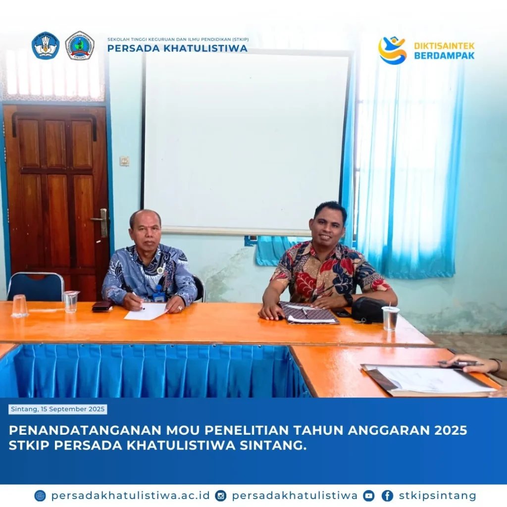 Sintang, 15 September 2025, Penandatanganan MoU Penelitian Tahun Anggaran 2025 STKIP Persada Khatulistiwa. Lembaga Penelitian dan Pengabdian kepada Masyarakat (LPPM) melaksanakan Penandatanganan
