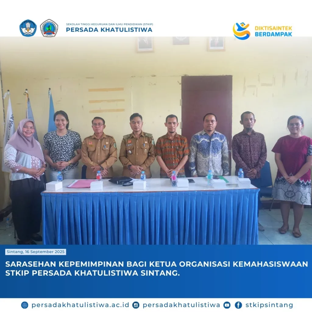 Sintang, 16 September 2025, Sarasehan Kepemimpinan Bagi Ketua Organisasi Kemahasiswaan STKIP Persada Khatulistiwa Dalam rangka meningkatkan kapasitas kepemimpinan bagi ketua Organisasi Kemahasiswaan