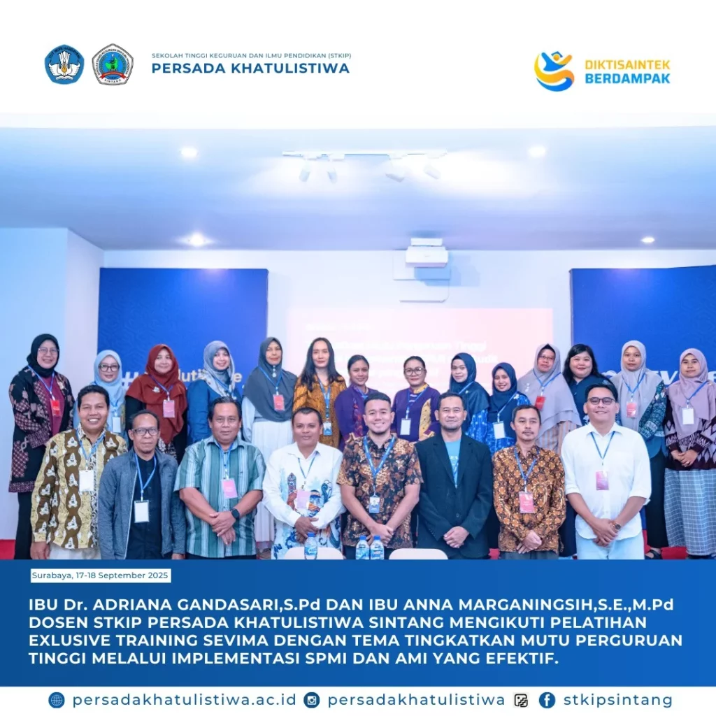 Sintang, 23 September 2025, Exlusive Training SEVIMA Di Surabaya STKIP Persada Khatulistiwa Sintang mengutus Ibu Dr.Adriana Gandasari, M.Pd dan Ibu Anna Marganingsih,S.E.,M.Pd